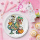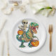 Plato De Papel Whimsical Skeleton Riding Mummy T-Rex Halloween
