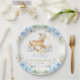 Plato De Papel Whimsical Sweet Deer Blue Floral Baby Shower