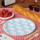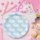 Plato De Papel White Bunnies on Pastel Blue Gingham Pattern
