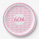 Plato De Papel White Hot Pink 60th Happy Birthday Typography