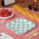 Plato De Papel White & Teal Checkerboard Paper Plates