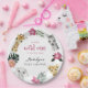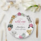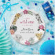El encantador producto de ducha para bebés con temática forestal cuenta con un borde acuático de vegetación y animales de la selva. Personalice su información o haga clic en "Haga clic en el personalizar más adelante" para editar estilos de fuente, tamaño y colores.