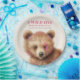 Una roca salvaje inspirada en el rollo y el tema de la ducha de bebé en el bosque, con un cachorro de oso bebé con un rayo rosado sobre un ojo.