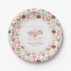 Los platos de papel dulce para la fiesta de primer cumpleaños de tu pareja salvaje incluyen un ilustracion de tepee rosa flanqueado por melocotón pastel y flores de menta. "Es salvaje" aparece en letras de melocotón. Personalice con el nombre del chica de cumpleaños y la fecha del fiesta en un patrón de fondo coincidente de animales de bosque, títeres rosados y plumas.