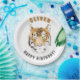 Celebrate special day with this vibrant personalized tiger birthday paper plate! Featuring a charming watercolor-style tiger head and 'Happy Birthday' message, this design adds a wild touch to any jungle, safari, or zoo themed party. Customize with any name to make it perfect for your little one's celebration.