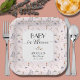 Las elegantes placas de papel de chica rosado para la ducha de bebé cuentan con flores silvestres simples, la frase "Baby in Bloom" y sus detalles en letras de moda. COINCIDIENDO elementos de nuestra colección.