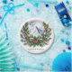 Celebre la temporada con este elegante diseño de corona de invierno con un telón de fondo de nieve enmarcado por ramas de pino, hojas huecas y racimos de bayas rojas empolvadas con nieve. Perfecto para tarjetas de vacaciones, decoración de temporada o regalos festivos, este ilustracion de acuarela captura la serena belleza de la naturaleza invernal. Añade un toque rústico y refinado a tu colección de vacaciones.