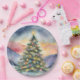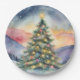 Plato De Papel Winter Christmas Tree Snowy Sunset Scenery