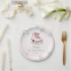 A beautiful ice-skating birthday paper plates featuring soft pink tones, elegant silver glitter snowflakes, and watercolor ice skates. Perfect for winter birthdays and girls skating parties.