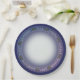 Celebrate Yule with convenient, unbreakable paper plates. This plate features the wheel of the year in winter colors. Lettering is white on a dark ombré blue to purple background, with holly sprigs accents.