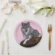 Un cuadro pastel de un majestuoso lobo gris adorna estos platos fiestas. Personalizar añadiendo texto o cambiando el color de fondo para que se adapte a ti mismo!