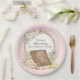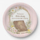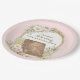 This plate has a Bible surrounded by a wreath of pink flowers in a wreath with a pink striped background with text that says "Women's Bible Study"