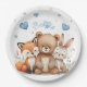 Plato De Papel Woodland Animals Party Pastel Blue Hearts Floral