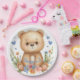 Create a fun and coordinated party table with these cute bear plates featuring soft blue hearts, pastel blossoms, and woodland details. Perfect for boys birthdays and baby showers.