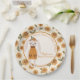 Decorate your whimsical woodland celebration with this charming baby shower paper plate. It showcases a sweet hand-drawn bunny rabbit in a mustard dress surrounded by a warm earthy floral pattern. This design is ideal for parents hosting a forest-themed party for a new arrival.
