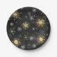 Plato De Papel Xmas copos de nieve dorados sobre fondo negro