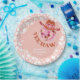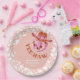Este elegante diseño cuenta con un gorra estrellado de vaquero y una bola de disco con fondo de melocotón de vaca blanca. Placa de papel de personalizable de temática occidental para cualquier edad.