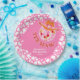 Este elegante diseño cuenta con un gorra estrellado de vaquero y una bola de disco con fondo de color rosa impreso en vaca blanca. Placa de papel de personalizable de temática occidental para cualquier edad.