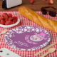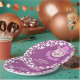 Este elegante diseño cuenta con un gorra estrellado de vaquero y una bola de disco con fondo de color púrpura impreso en vaca blanca. Placa de papel de personalizable de temática occidental para cualquier edad.