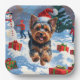 Plato De Papel Yorkshire Terrier en Nieve con Gorra Navidad