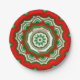 Un diseño de zag kaleidoscope rojo, verde y blanco crea un plato fiesta inusual. Un pequeño texto rojo en el centro dice, "¡Feliz Navidad!" y la fecha "20xx" puede ser reemplazada por tus propias palabras para coincidir con tu tema fiesta. Las servilletas fiestas coincidentes se pueden encontrar en la tienda PS Bonito Papers en la categoría "Fiesta Suministros: Platos, servilletas, etc.>Navidades".