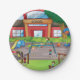 Escena en un patio de recreo escolar con niños jugando. Este diseño parece realmente efectivo en estas Placas de papel