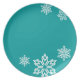 Diseñe su propio fondo de color y agregue el nombre de su destinatario, sentimiento de vacaciones y más! Hermosos copos de nieve blancos adornan este hermoso plato, perfecto para cenas de vacaciones y como plato de servir.