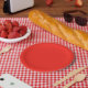 Platos de papel en rojo cálido escarlata creados para coordinarse con la cocina y el comedor de los Navidades Rojos Flamingo. Un diseño de personalizable para que puedas personalizar con tu propio texto, imágenes e ideas.