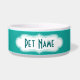 La frontera verde azulada con diseño personalizado del estilo de la etiqueta del nombre del animal de compañía viene en este cuenco del perro para la su comida o el agua de mascota. El plato lindo del perro hace un gran regalo también.