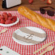 Platos de Ancla Rayados Marrón Taupe y Blanco