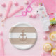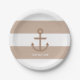 Platos de Ancla Rayados Marrón Taupe y Blanco. Personalice con cualquier texto. Los artículos coincidentes están disponibles.
