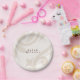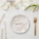 Un plato de papel para bodas clásico minimalista que presenta un motivo de damasco dibujado a mano y tipografía elegante y chic. Elija un tono que refleje su estilo y simplemente personalícelo con sus detalles.