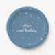 Platos de Cumpleaños con Cielo Celeste y Estrellas Grandes. Personalice con cualquier texto. Disponibles artículos a juego.