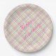 Platos de papel a cuadros de colores pastel, personaliza el texto de feliz cumpleaños para adaptarlo a cualquier ocasión especial. Ideales para Pascua, baby shower, celebración de boda, aniversario o picnic. El fondo blanco también se puede cambiar a cualquier color de su elección.
