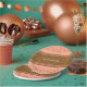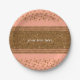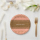 Platos de fiesta de lunares de confeti rosa melocotón y dorado. Personaliza con cualquier texto. Disponibles artículos a juego.