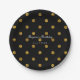 Platos de fiesta de lunares de papel de aluminio falso negro y dorado. Personalice con cualquier texto. Los artículos coincidentes están disponibles.