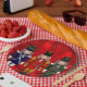 PLATOS de FIESTA de papel de bokeh-pepino trio-roj