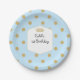 Platos de fiesta del Príncipe Coronado con lunares azules y dorados. Personalice con cualquier texto. Hay artículos que coinciden disponibles.