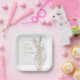 Platos de fiesta para una despedida de soltera en un estilo suave y elegante con una ilustración gráfica adorable de lirio del valle, tonos pastel.