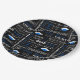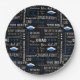 Platos de papel para fiestas mostrados con una celebración de gorras de graduación y mensajes impresos.
