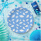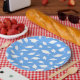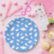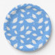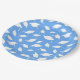 Platos de papel para fiestas mostrados con una celebración de estampado de gorras de graduación.