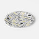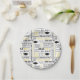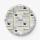 Platos de papel para fiestas mostrados con una celebración de gorras de graduación y mensajes impresos.