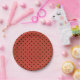 Platos de Halloween caprichosos de lunares naranjas y negros. Personalice con cualquier texto. Los artículos coincidentes están disponibles.
