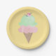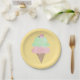 Platos de papel amarillo claro con cono de helado en acuarela.