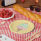 Platos de papel amarillos con cono de helado en ac