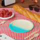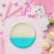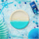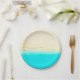 Orilla del océano, agua azul turquesa, playa de arena, platos de papel perfectos para una boda con tema de playa o baby shower.