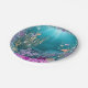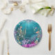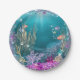 Platos de papel bajo el mar con hermoso fondo azul teal y rosa bajo el mar. Puedes agregar texto para personalizar estos elegantes platos de papel del océano bajo el mar.