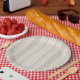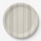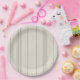 Elegantes platos de papel beige que presentan un patrón de raya suave inspirado en textiles con líneas verticales limpias. Diseñados para entretener de manera elevada, estos platos ofrecen una apariencia refinada y minimalista que combina perfectamente con decoraciones de mesa modernas y clásicas.