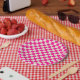 Platos de papel con estampado de cuadros verdes ác