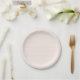 Estampado tribal de espiga de arenque rosa suave y blanco en un plato de papel para baby shower o cualquier fiesta femenina. Patrón juguetón y dulce.